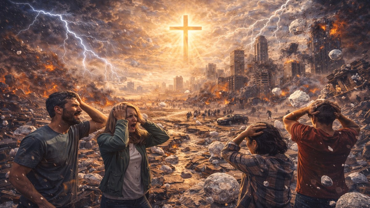 Tout le passage doit être compris de manière symbolique. Il ne décrit pas un cataclysme naturel au sens littéral, mais la révélation de l’effondrement définitif de Babylone, ce système mondial corrompu, religieux, politique et moral, qui s’est élevé contre Dieu. L’orage, les éclairs, le tremblement de terre, la disparition des montagnes et la grêle ne sont pas des phénomènes géologiques, mais des images fortes de la désintégration complète du pouvoir du mal.