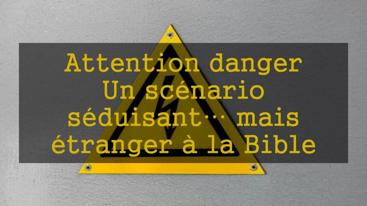 Mais attention : ce scénario est dangereux. Il n’est pas tiré des Écritures dans leur ensemble, mais reconstruit à partir de versets sortis de leur contexte, appuyé sur une lecture littérale sélective et influencé par une tradition humaine apparue seulement au XIXᵉ siècle.