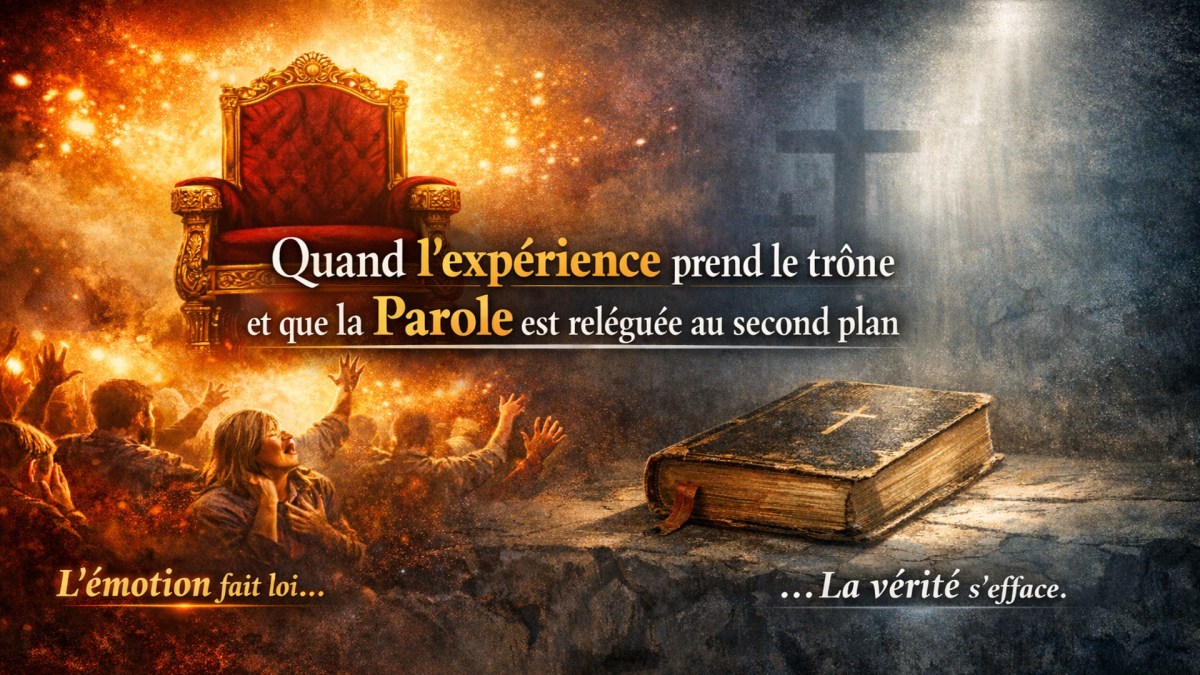 Quand l’expérience remplace la Parole de Dieu, l’homme reprend la place que seule la révélation divine doit occuper. Le ressenti devient roi. L’impression devient norme. L’émotion devient autorité. Et peu à peu, la voix claire de l’Écriture s’efface derrière le bruit des récits humains.